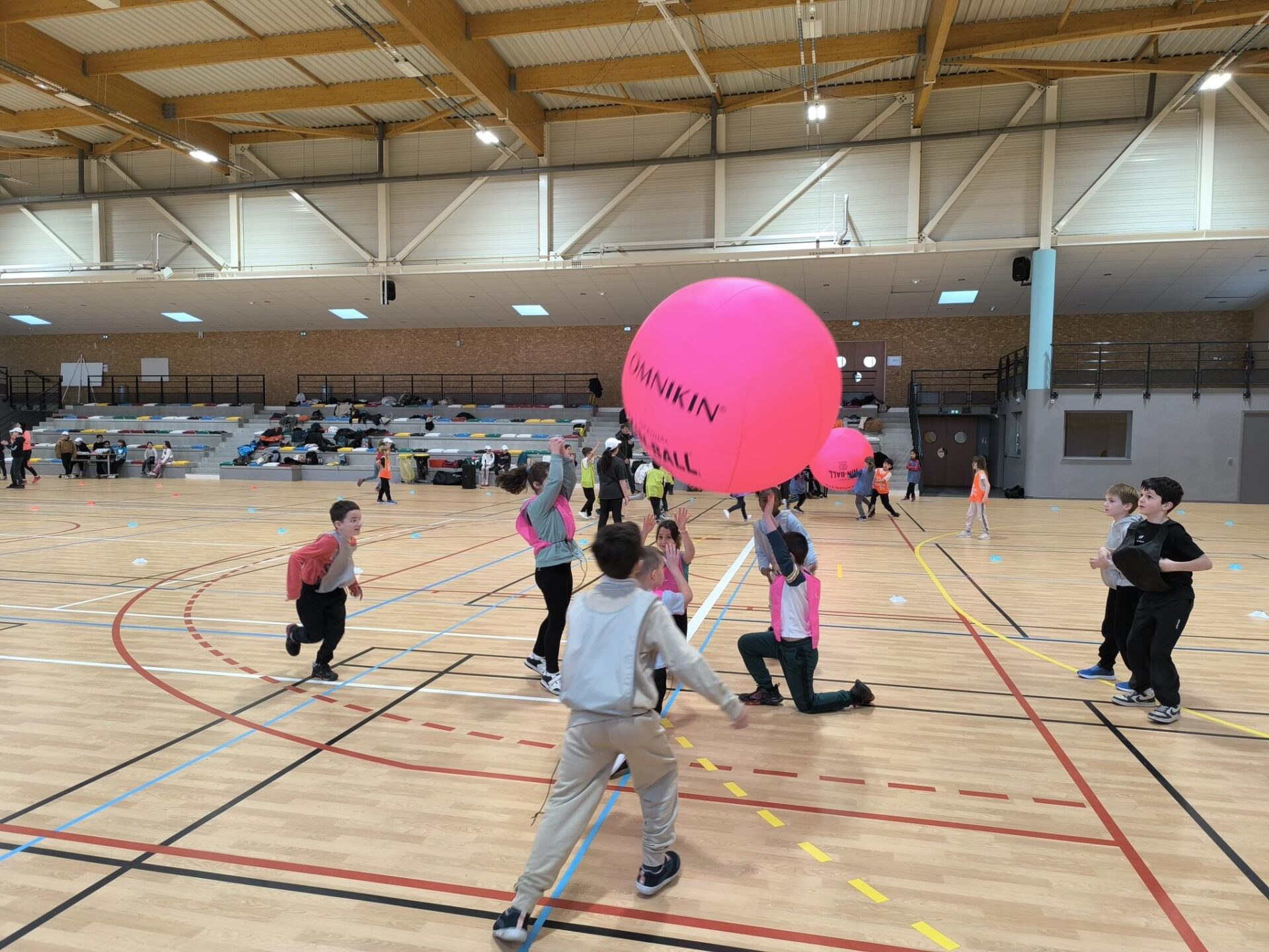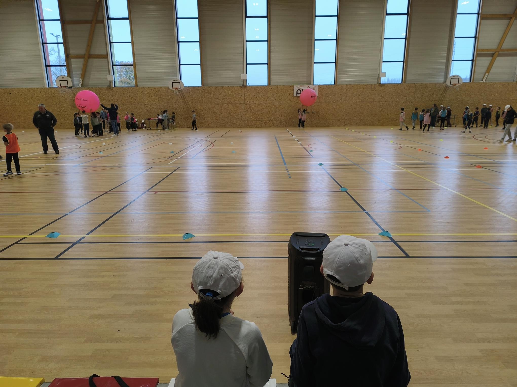 C’est une rencontre de Kin-ball, les enfants de CM de Plélo.